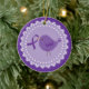 Mostre o apoio para um amigo ou um membro da família com doença de Alzheimers com este pássaro bonito no roxo que veste uma fita roxa da consciência em um presente cerâmico da lembrança do ornamento. Para mais do que apenas o Natal, este ornamento de suspensão bonito é agradável para um carro, janela, ou como um presente da memória.