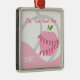 Uns enfeites de natal para os professores que caracterizam uma ilustração de uma maçã cor-de-rosa no direito. Apple é envolvido em luzes de Natal cor-de-rosa. Design cor-de-rosa através da parte inferior. Fundo do redemoinho das cinzas. Personalize com seu nome no rosa na parte superior e o ano no branco no fundo deixado.