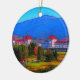 Este ornamento redondo da porcelana é perfeito para qualquer um que foi às montanhas brancas de New Hampshire. O hotel caracterizado na parte dianteira é recurso de Washington da montagem de Omni, um lugar histórico e de gama alta para permanecer no pé de seu homónimo, Mt. Washington. Eu aumentei digital a imagem com um tratamento gráfico. No reverso do ornamento, sobre um fundo vermelho contínuo, é a informação da "recurso New Hampshire de Washington montagem". Sinta livre contactar-me com Zazzle se você tem perguntas sobre este artigo ou se você gostaria d em uma forma diferente do ornamento. Eu estou feliz ajudar.