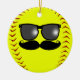 Este ornamento do softball do fastpitch combina que bonito e Stache na moda com seu esporte favorito. Os óculos de sol e o moustache podem ser movidos ou removido assim que você pode personalizar para o jogador, o treinador ou a equipe com um nome e um número.
