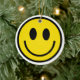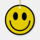 Há uma cara amarela grande em ambos os lados deste ornamento,