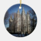 Ornamento redondo bonito com cena do inverno do templo de Salt Lake em Salt Lake City.