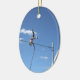 Fotografia de um vaulter de pólo que voa altamente contra um céu azul bonito