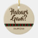 Ornamento com as palavras "Habari Gani? a "que traduz 'o que é a notícia?" qual é parte da celebração de Kwanzaa. As palavras estão no marrom em um fundo tan e este artigo tem uma listra vermelha, preta, e verde do acento.
