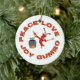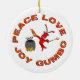 Comemore o Natal com sabor verdadeiro de Louisiana com estes enfeites de natal originais. Os ornamento caracterizam um lagostim do cozinhar do Gumbo cercado pelo slogan "paz, amor, alegria, Gumbo" em um lado. Lance o ornamento para encontrar um símbolo da flor de lis do ouro em um fundo do vermelho do Natal. Visite www.zazzle.com/enchantedbayou hoje para todos seus cartões temáticos de Cajun, de Louisiana e de Nova Orleães, convites e presentes!