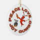 Comemore o Natal com sabor verdadeiro de Louisiana com estes enfeites de natal originais. Os ornamento caracterizam um lagostim do cozinhar do Gumbo cercado pelo slogan "paz, amor, alegria, Gumbo" em um lado. Lance o ornamento para encontrar um símbolo da flor de lis do ouro em um fundo do vermelho do Natal. Visite www.zazzle.com/enchantedbayou* hoje para todos seus cartões temáticos de Cajun, de Louisiana e de Nova Orleães, convites e presentes!