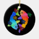 Este ornamento colorido caracteriza dois peixes coloridos inclinação de Koi entre flores coloridas.