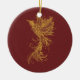um design dourado decorativo do lineart de um pássaro abstrato de phoenix em um ornamento cerâmico vermelho