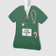 Enfeites de natal temático de medicina criativa com esfregões verdes em hospitais, um estetoscópio e uma cana doce no bolso. Editar texto para adicionar o nome do médico, enfermeiro ou outro profissional de saúde.
