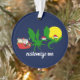 Um belo presente de Enfeites de natal com renas de dragão puxando Papai Noel no trenó. Um presente de Natal engraçado com dois dragões verdes voando em frente à lua vestindo chapéus de Papai Noel. Personalize para fazer uma criança muito feliz ou fã de fantasia.