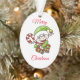 O elfo bonito segurando uma bengala de doce está representado neste ornamento de Feriado. Um dos lados deseja um Feliz Natal e o outro lado deseja um Feliz ano novo, fazer este adorno doce para enfeitar a árvore nos feriados, ou dar como presente!