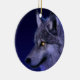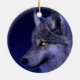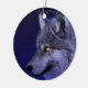 Um ornamento redondo com uma cabeça de lobo azul místico.