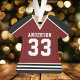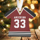 Ornamento Uniforme da Equipe de Esportes de Hockey Jersey. Este ornamento de camisa de hóquei é perfeito para qualquer um que pratica esportes escolares ou ama assistir esportes. Personalize este design personalizado com o seu próprio nome de equipe e número de camisa.