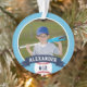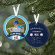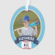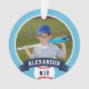 Comemore uma época incrível para o seu jogador de beisebol favorito com este ornamento personalizado legal em uma marinho azul e azul. Personalize a frente com a foto, o nome e o número de camisa do jogador e adicione mais detalhes no verso, incluindo o nome da equipe ou da liga, a estação, a idade, a posição e o nome do treinador.