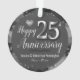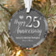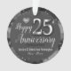 Adorável ornamento de 25 Feliz cinza. Folha falsa no 25 e como um quadro de borda. Fundo do óleo de prata criado por Valarie Wade. Pequena joia cardíaca de cinza no canto superior. Nomes e datas são ajustáveis