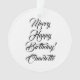 Feliz Aniversário nome personalizado texto elegante script Ornamento de Natal.