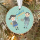 Este adorável ornamento apresenta um Judeu Menino e uma Menina de personagem engraçada e caprichosa vestida com roupas azuis inspiradas no judeu em fundo azul teal. É um design original e você não o encontrará em nenhum outro lugar. Feliz Hanukkah!