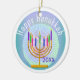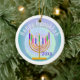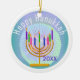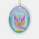 Linda ornamento Hanukkah com nove menorah de vela lê "Feliz Hanukkah"! Você pode facilmente adicionar o ano atual a essa manutenção Feliz Hanukkah!