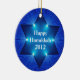 Um adorno hanucá brilhante, único e bonito com a estrela de David e luzes iluminadas em um fundo azul com o texto "Happy Hanukkah 2012" em um lado, em letras brancas. Altere facilmente o texto ou exclua-o se não for necessário. Sala atrás para personalizar, se desejado. A perfeita lembrança de Hanukkah para 2012!