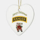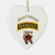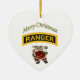 Ornamento Feliz de Natal. Este ornamento em forma de coração é decorado de um lado com a guia Ranger, Papai Noel, e as palavras "Feliz Natal". O reverso é decorado com crachás de cachorro e as palavras "Eu Amo Meu Soldado."
