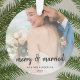 Enfeites de natal de fotos simples e na moda num estilo moderno de design minimalista, com uma elegante tipografia de escrita natural a preto e branco clássico, com uma letra de escrita manual informal. A foto e o texto podem ser facilmente personalizados com seu nome e mensagem para uma única design de casamento, seguindo seu dia especial.
