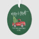 Feliz de Script de Pincel Moderno e Bright Watercolor Vintage Red Truck com Árvore de Natal - Ornamento Familiar