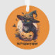 Ornamento "Feliz Meow-O-Ween" Gato Preto e Jack-o-Lanterna