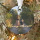 Ornamento Feriado de Fotografia com Letra Neon feliz e Brilh