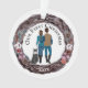 Celebre seu primeiro Natal junto com esta bela ilustração de uma mulher cabeleira vestindo calças de denim e um topo azul de pé com as costas em sua direção. Ela está ao lado do seu namorado / marido que tem o braço ao redor da cintura que está vestindo um topo azul, calças de denim, botas marrons e uma jaqueta sem manga bronzeada. O cão preto-e-branco da fronteira está sentado no chão do lado esquerdo dela e pode ser apagado se preferir ter apenas o casal. Todas elas são enquadradas por um ramo de madeira que contém delicadas amoras vermelhas, bolas de algodão, cones de pínus e folhas de abeto e as palavras, o nosso primeiro Natal seguido do ano. As costas têm uma modelo para a sua foto personalizada.
