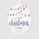 Celebre o seu Primeiro Natal como Avó com esta grinalda de luzes, foto e ornamento de tipografia moderna e escrita roxa. Adicione uma foto e texto favoritos a este design único para um acento festivo na sua árvore de Natal. É fácil personalizar para ser exclusivamente seu.