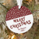 Ornamento de Festivo Red Star Feliz Natal Feriado. Belo Enfeites de natal desenhado por costume. Crie seu próprio Enfeites de natal familiar. O ornamento tem lindas estrelas brancas sobre fundo vermelho e tipografia moderna.