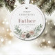 First Christmas as a Father Personalized with Name and Year Round Acrylic Keepsake Ornament Gift... A beautiful bouquet of pink roses, pine cones, and Christmas botanicals decorates the rose gold metallic circle framing the text of your holiday themed ornament. The example wording on this keepsake acrylic ornament reads "First Christmas as a Father" in elegant serif typography followed by the new dad's name and the current year. All text can be easily revised on the personalization template.