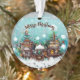Aldeia Festiva de inverno Casas de Fairytale Ornament Floco de Neve. O conto de fadas se casa no inverno com neve e belos flocos de neve. Um desejo Feliz de Natal em um roteiro de tendências. Você pode mudar o texto.