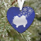 Este ornamento bonito de Feriado fará um maravilhoso presente de manutenção para qualquer um que ame um Cão Pomerano. Apresenta uma silhueta prateada Imagem da Pomerânia em frente a um spray de flocos de neve ornamentado prateada. A imagem é colocada sobre um fundo azul profundo gradiente. A parte de trás do ornamento tem o mesmo fundo azul e flocos de neve, e um campo de texto para você personalizar. Linda!