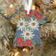 Uma imagem de um teste padrão floral com um olhar do bordado das flores alpinas brancas de Edelweiss de Europa em seu produto. Cores azuis, vermelhas, amarelas, e brancas. Alpinum do Leontopodium da suiça, da Alemanha, e da Áustria.