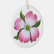 A pintura original das belas artes de uma flor cor-de-rosa do Dogwood pelo artista Carolyn McFann do estúdio de ronrom de dois gatos imprimiu em uma qualidade e em um ornamento cerâmico customizável do feriado.