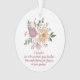 Este adorável ornamento perfeito para um melhor amigo que o aceita por quem você é tem um belo buquê de flores, bagas e folhas contra um fundo branco e uma adorável citação de amizade feita por uma pessoa desconhecida em uma fonte rosa: Um amigo é aquele que ignora sua cerca quebrada e admira as flores no seu jardim.