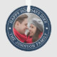 Celebre a alegria do amor e junto com esta foto casal, sr. & sra. elegant script ornnament. Este ornamento maravilhosamente trabalhado apresenta um vintage inspirado "mr. & mrs." num dos lados, irradiando elegância do eterno. O lado oposto mostra uma querida foto de casal, acrescentando um toque pessoal à decoração de suas festas. Ao redor de ambos os lados há um design de tipografia curvado em um rico fundo azul marinho, com a frase "feriados felizes" e o nome da família graciosamente integrados no ornamento. Esta peça serve como um encantador guardião, perfeito para comemorar momentos especiais como o seu primeiro Natal como casal casado, aniversários de marcos como o 50º, ou como um presente sincero para os pais celebrarem o seu amor duradouro. Este ornamento capta maravilhosamente o espírito das festas enquanto honra o amor compartilhado por recém-casados ou casais duradouros, fazer-o como uma adição ideal a qualquer decoração festiva. Seja como presente pensativo ou recordação familiar apreciada, é um lembrete eterno do amor e da alegria durante o feriado.
