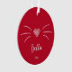 Adorno de gato vermelho personalizado fofo. Um lado tem bigodes de gato fofo e o nome do gato em letra cursiva. O verso tem sua foto favorita de seu gato.