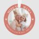 Adorno de lembrança de perda moderno e elegante, sua foto favorita em moldura redonda, letra circular, corações decorativos sobrepostos em fundo ferrugem.