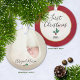 Comemore o Primeiro Natal do seu pacote de preciosos com o nosso ornamento personalizado e datado de manutenção de novo. O lado da frente do nosso ornamento mostra a foto e o nome do seu recém-nascido com uma pequena e bonita coloração aquática, morango holly, em vermelho e verde. O verso exibe o "Primeiro Natal" na tipografia moderna, o ano, repete a foto esmaecida no fundo, e tem um galho de coloração d'água correspondente. #BabysFirst #FirstChristmas #Ornament