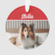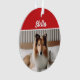 O Natal não está completo sem um ornamento na árvore para o cachorro da família! Adicione sua foto e seu nome a esta lindíssima raça de cão Rough Collie com tema específico, ornamento de dois lados.