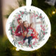 Um ornamento fotográfico de na moda feriado com a tipografia clássica "Feliz feriado" em preto sobre um fundo branco minimalista e limpo. A foto e o nome da família podem ser facilmente personalizados para um toque pessoal. Um design de natal simples, minimalista e contemporâneo para destacar esta temporada de festas! A imagem mostrada é apenas para fins de ilustração para ser substituída pela sua própria foto.