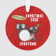 O ornamento da árvore de Natal para um jovem baterista. Ornamento de cinza redonda com nome e data de ano na frente ao lado de uma imagem de conjunto de tambores. Adicione a foto dele, ou dela, ao fundo. A foto recebeu um filtro, que você pode mudar na área de design em "filtros".