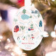 Ilustrações modernas do mapa de natal que contam palhetas, pinguins, calçados de patinação no gelo, lago gelado, casas, vilas, estrada, montanha, cabana a cabo, esquis, boneco de neve e muito mais! Adicione seus sentimentos positivos, com paz e amor, alegria, alegria, esperança, alegria, amor, abraços.... Adicione sua foto de família no fundo.