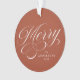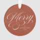 Enfeites de natal elegante com "Feliz" na frente, em uma cobertura de script de caligrafia branca, com fundo marrom aterrorizado. Personalize a frente do ornamento, acrescentando o seu nome e o ano em caracteres brancos. A parte de trás do ornamento mostra sua foto.