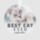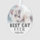 Ornamento de Foto do Melhor Gato de Todos os Tempos Personalizado. Celebre o seu querido gatinho nesta temporada de festas com um ornamento de foto personalizado projetado para capturar memórias queridas juntos. A frente apresenta espaço para uma foto do seu gato, juntamente com texto personalizável que diz "Melhor Gato de Todos os Tempos" e o nome do seu gatinho. A parte de trás exibe um design de impressão de pata com uma segunda foto e um recorte em forma de coração no centro, adicionando um toque doce e pessoal. Tanto a cor da fonte quanto a impressão de pata podem ser personalizadas para se adequar ao seu estilo. Este souvenir é perfeito para amantes de gatos, tornando-se um presente atencioso para as festas, aniversários ou como um memorial especial para o seu animal de estimação felino. É uma maneira bonita de manter seu amigo peludo perto, seja