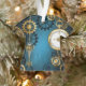 Turquesa, texturizada, fundo steampunk com latão e engrenagens douradas, chave prateada e relógio. Estilo Steampunk.