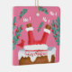 Um adorno cor-de-rosa fofo e divertido, com um lado mostrando-o descendo pela chaminé, seus pés no ar, sob o olhar atento de um cardeal, e o outro lado ele está parado com um sino de joelho em uma mão e 3 presentes na outra. Personalize-o com seu Cartões de natal, ano e nome da família. © ArianeC Ilustrações — Todos os direitos reservados