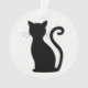 Enfeites de natal de gato preto apresentando uma silhueta de gato preto elegante em um fundo branco. presente de feriado bonito e divertido para um amante de gatos ou veterinário.